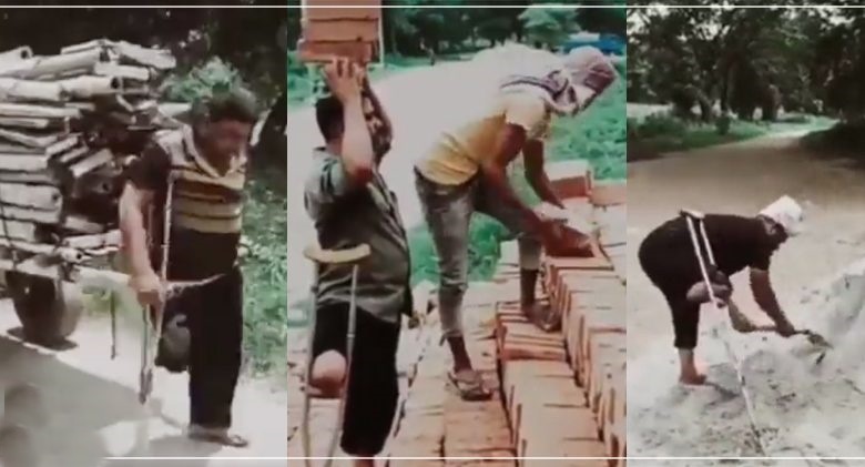एक पैर के बिना कुछ ऐसे मजदूरी करता नजर आया शख्स
