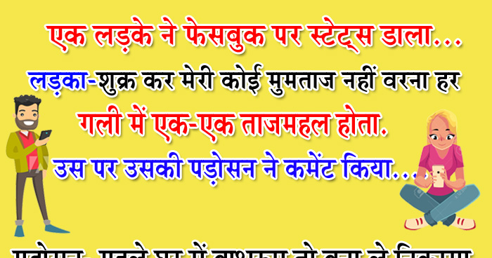 कभी-कभी मन खुश रहने के बहाने ढूंढता है क्योंकि हर वक्त इंसान यूंही बिना किसी वजह के खुश नहीं रह सकता और आजकल के इस भागदौड़ भरी जिंदगी में खुश रहना बहुत जरूरी है. इसलिए आज के इस पोस्ट में हम आपके लिए खुश रहने की वजह लेकर आये हैं. जी हां, आज हम आपके लिए कुछ ऐसे मजेदार चुटकुले लेकर आये हैं जिन्हें पढ़ते ही आपका मन खुश हो जाएगा. तो देर किस बात की है? चलिए शुरू करते हैं हंसने हंसाने का ये खूबसूरत सिलसिला.