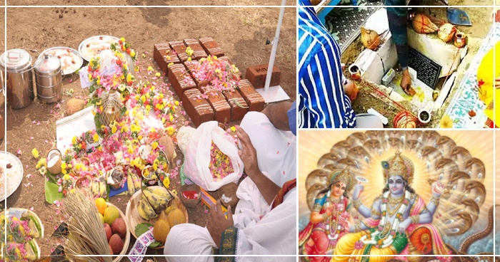 भूमि पूजन करते हुए शेष नाग की पूजा की जाती है। पूजा के दौरान कलश में दूध, दही और गाय का घी डाल जाता है और मंत्रों को पढ़कर शेष नाग को बुलाया जाता है। शेष नाग की पूजा करते हुए उनसे कहा जाता है कि वो घर की रक्षा करें। शेष नाग को प्रसन्न करने के लिए विष्णु रूपी कलश में लक्ष्मी स्वरूप सिक्का डाला जाता है और फूल-दूध चढ़ाए जाते हैं। ऐसा करने से नाग खुश हो जाते हैं। इसके अलावा भगवान शिव जी की पूजा भी की जाती है। पूजा के समय चांदी के शेष नाग का प्रयोग किया जाता है।
