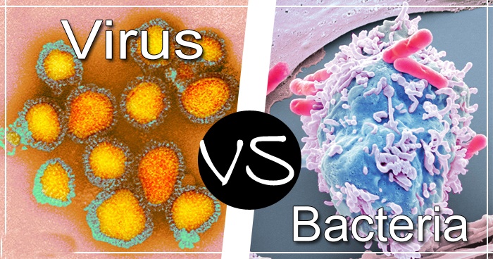 Bacteria और virus दोनों Microorganisms यानि सूक्ष्म जीव होते हैं। इन्हें हम नग्न आँखों से नहीं देख सकते हैं। इन्हें यदि आपको देखना है तो सूक्ष्मदर्शी (माइक्रोस्कोप) नामक विशेष यंत्र की आवश्यकता पड़ती है। ये दोनों ही सूक्ष्मजीवों की श्रेणी में आते हैं लेकिन इनके बीच जमीन आसमान का अंतर होता है।