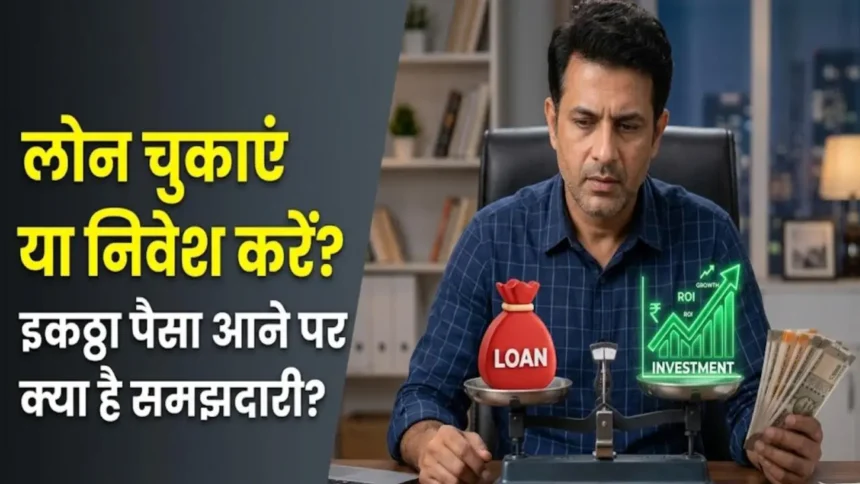 जब हाथ में एक साथ बड़ी रकम आती है, तो सवाल उठता है: लोन खत्म करें या निवेश करें? ऊंचे ब्याज वाले लोन जैसे क्रेडिट कार्ड या पर्सनल लोन पहले साफ करने फायदेमंद होते हैं, क्योंकि उनकी ब्याज दर अक्सर निवेश से मिलने वाले रिटर्न से ज़्यादा होती है। अगर लोन कम ब्याज पर चल रहा है और आपके पास इमर्जेंसी फंड है, तो लंबे समय तक निवेश करना ज़्यादा फायदेमंद हो सकता है।