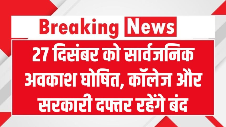 उत्तर प्रदेश सरकार ने 27 दिसंबर को राज्य में सरकारी छुट्टी की घोषणा की है। पहले इस तारीख को लेकर लोगों में काफी असमंजस था, जिसे अब सरकारी आदेश जारी कर स्पष्ट कर दिया गया है। इस दिन प्रदेश के सभी सरकारी कार्यालय, स्कूल और कॉलेज पूरी तरह बंद रहेंगे। प्रशासन ने सभी विभागों को निर्देश दिए हैं कि वे उस दिन होने वाले अपने सभी कार्यक्रमों को टाल दें या आगे के लिए तय करें। यह छुट्टी अब सरकार की आधिकारिक अवकाश सूची में शामिल है।