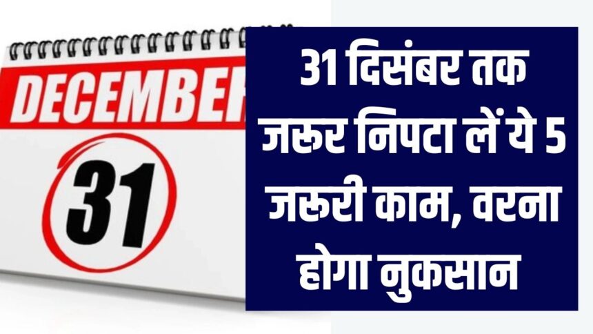 अगर आप नुकसान से बचना चाहते हैं, तो 31 दिसंबर की समय सीमा को अनदेखा न करें। सरकार ने 5 बहुत जरूरी कामों को निपटाने का यह आखिरी मौका दिया है। कहीं ऐसा न हो कि डेडलाइन निकल जाए! तुरंत जानें कौन से हैं वे काम, और उन्हें आज ही पूरा करें!