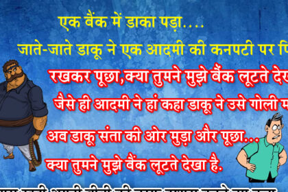 मजेदार जोक्स: एक बैंक में डाका पड़ा, जाते-जाते डाकू ने एक आदमी की कनपटी पर पिस्तौल रखकर पूछा