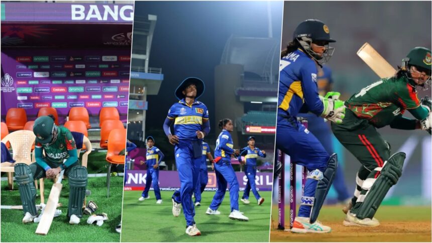 BANW vs SLW Match Highlights: आईसीसी महिला वर्ल्ड कप 2025 में सोमवार को खेले गए मुकाबले में श्रीलंका ने बांग्लादेश को सात रन से हरा दिया। यह मैच टूर्नामेंट के सबसे रोमांचक मुकाबलों में से एक साबित हुआ, जिसमें श्रीलंका ने आखिरी सात गेंदों में पांच विकेट चटकाकर हाथ से फिसलता मैच जीत लिया। इस हार के साथ बांग्लादेश सेमीफाइनल की दौड़ से बाहर हो गया।