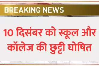 10 दिसंबर को स्कूल और कॉलेज की छुट्टी घोषित, सरकारी दफ्तर भी रहेंगे बंद