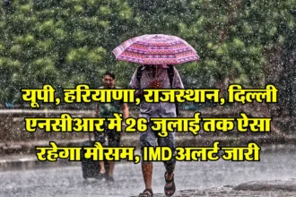 IMD Weather Alert : यूपी, हरियाणा, राजस्थान, दिल्ली एनसीआर में 26 जुलाई तक ऐसा रहेगा मौसम, IMD अलर्ट जारी