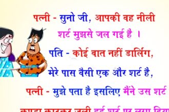 पत्नी- सुनो जी, आपकी वह नीली शर्ट मुझसे जल गई है। पति- कोई बात नहीं डार्लिंग,