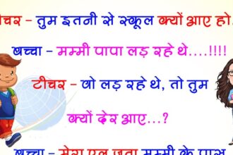 टीचर – तुम इतनी देर से स्कूल क्यों आए हो…? बच्चा – मम्मी पापा लड़ रहे थे…!!! टीचर