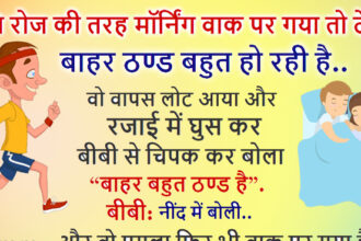 पति मॉर्निंग वाक पर गया तो देखा ठण्ड बहुत हो रही है, वो वापस लोट आया और रजाई में.