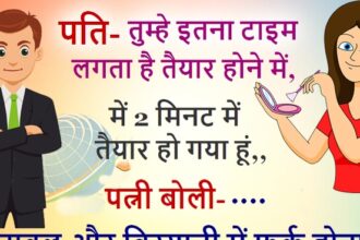 पति- तुम्हे इतना टाइम लगता है तैयार होने में, में 2 मिनट में तैयार गया, पत्नी …