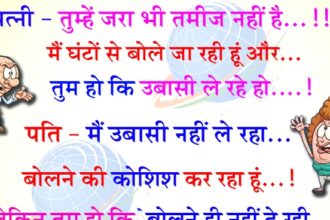 पत्नी- तुम्हें जरा भी तमीज नहीं है.! मैं घंटों से बोले जा रही हूं और तुम हो कि