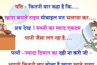 मज़ेदार जोक्स- पति – कितनी बार कहा है कि खाना बनाते टाइम मोबाइल मत चलाया कर अब देख! सब्जी का