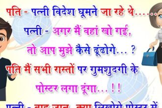 मज़ेदार जोक्स- पति-पत्नी विदेश घूमने जा रहे थे पत्नी अगर मैं वहां खो गई तो ? पति मैं रास्तों पर