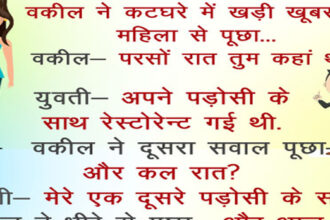 मजेदार चुटकुले-वकील ने कटघरे में कड़ी खूबसूरत महिला से पूछा…वकील परसों रात तुम कहां थी ?