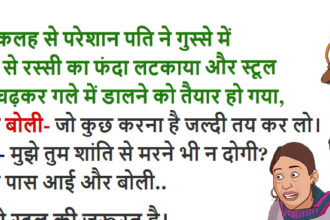 Jokes – गुस्से में पति पंखे में रस्सी बाँध स्टूल पर खड़ा हुआ और गले में फंदा डालने लगा, फिर पत्नी ने..