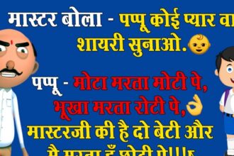 मजेदार जोक्स- मास्टर बोला, पप्पू कोई प्यार वाली शायरी सुनाओ. पप्पू – “मोटा मरता मोटी पे..