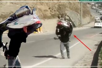 स्कूटी को कंधे पर उठा हाइवे पर चलने लगा शख्स, वजह को लेकर लोगों के बीच मची खलबली – Video