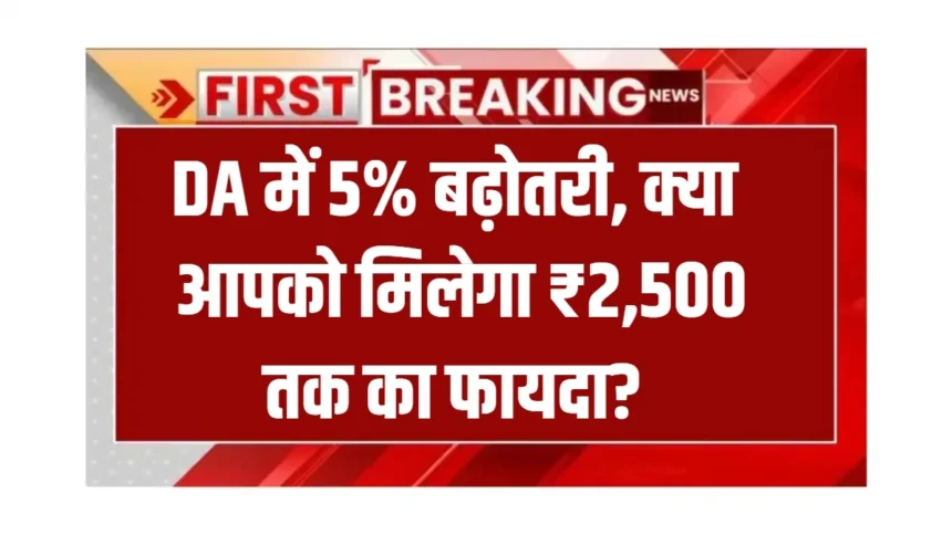 अगर यह 5% DA बढ़ोतरी लागू होती है, तो कर्मचारियों की सैलरी में अच्छी बढ़ोतरी होगी। उदाहरण के तौर पर, अगर किसी सरकारी कर्मचारी की सैलरी ₹50,000 है, तो 5% DA बढ़ने से उन्हें ₹2,500 का अतिरिक्त फायदा होगा, और उनकी सैलरी ₹52,500 हो जाएगी।
