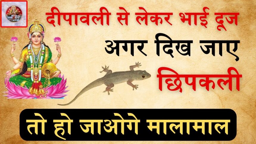 20 अक्टूबर 2025 को दिवाली का पर्व मनाया जाएगा, और इसी दिन रात को लक्ष्मी पूजा की जाएगी। भारतीय मान्यताओं के अनुसार, इस रात घर में छिपकली दिखाई देना अत्यंत शुभ माना जाता है। इसे धन-समृद्धि और सकारात्मक ऊर्जा का प्रतीक माना जाता है, और कहा जाता है कि यह संकेत है कि घर में माता लक्ष्मी का आगमन होने वाला है। ऐसे अवसर पर छिपकली देखना घर में सुख, समृद्धि और आर्थिक उन्नति लाने वाला माना जाता है।