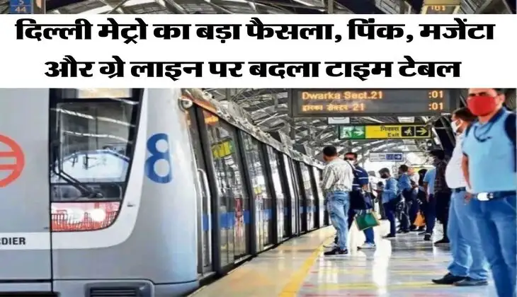 DMRC Updates : दिवाली के समय में मार्केट, टेनों और मेट्रो में भी खूब भीड़भाड़ देखी जाती है और दिल्ली जैसे भीड़ भाड़ वाले शहर में तो दिवाली के मौके पर अच्छी खासी भीड़ देखने को मिलती है। अब हाल ही में दिल्ली मेट्रो (DMRC Updates) की ओर से बड़ा फैसला लिया गया है, जिसके तहत पिंक मजेंटा और ग्रे लाइन पर टाइम बदल दिया गया है। आइए खबर में जानते हैं इस बारे में विस्तार से।