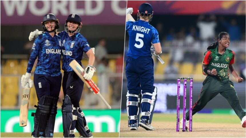 आईसीसी महिला वर्ल्ड कप 2025 में इंग्लैंड की टीम को बांग्लादेश पर जीत दर्ज करने में कड़ी मेहनत करनी पड़ी। गुवाहाटी में खेले गए मुकाबले में इंग्लैंड ने 179 रन के लक्ष्य का पीछा करते हुए 29 गेंदें बाकी रहते चार विकेट से जीत हासिल की। मैच के दौरान इंग्लिश टीम को एक समय 78 पर पांच और 103 पर छह विकेट गंवाने का सामना करना पड़ा। लेकिन पूर्व कप्तान हेदर नाइट ने नाबाद 79 रन की पारी खेलकर टीम को संकट से बाहर निकाला।