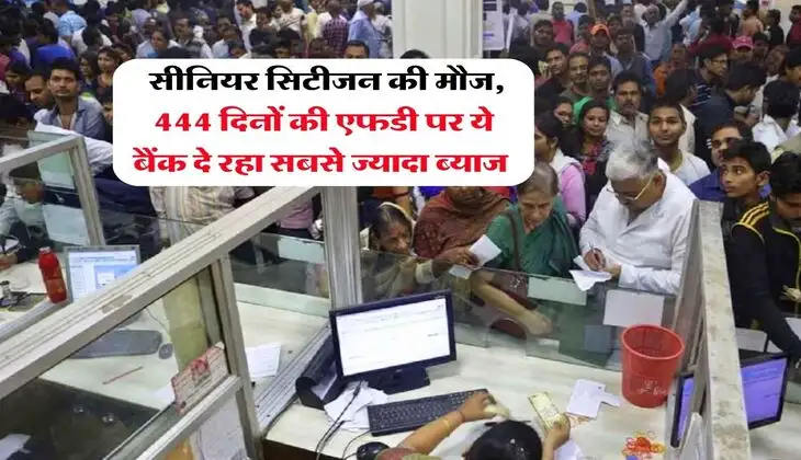 Fixed Deposit Interest Rate : भविष्य को सुरक्षित करने के लिए सभी किसी न किसी निवेश विकल्प में पैसा लगाते हैं। आज बाजार में अनेकों निवेश के विकल्प मौजूद हैं, लेकिन ज्यादातर लोग जोखिम न उठाते हुए सुरक्षित निवेश करने की सोचते हैं। ऐसे में एफडी यानी फिकस्ड डिपॉजिट अच्छा ओपशन है। अगर आप एफडी में निवेश करने की सोच रहे हैं तो आपके लिए अच्छा मौका है। दरअसल, 444 दिन की एफडी स्कीम पर इस समय कई बैंक आम ग्राहकों और सीनियर सिटीजन को तगड़ा ब्याज दे रहे हैं। आईये नीचे खबर में जानते हैं –