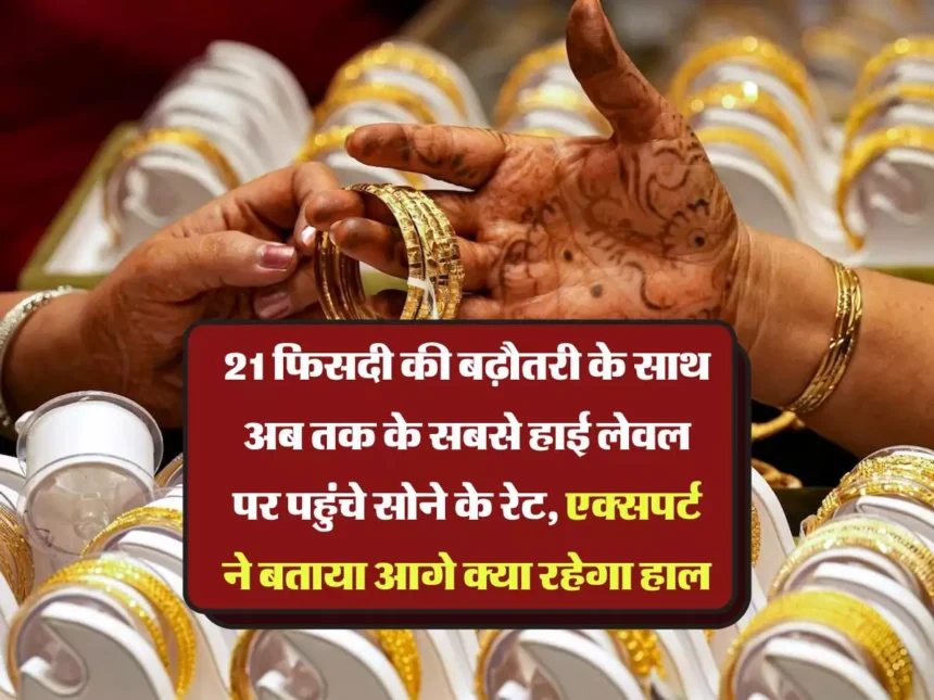 Gold Rate Hike :सोने के दामों में लगातार बढ़ौतरी होती जा रही है। सोने के दाम बढ़ने के पीछे कईं कारक हैं। सोना 21 फिसदी की बढ़ौतरी के साथ हाई लेवल पर पहुंच गया है। वहीं, आने वाले दिनों में सोने (Gold Rate Hike) को लेकर एक्सपर्ट ने अनुमान भी लगाया है। आइए जानते हैं सोने को लेकर एक्सपर्ट्स के क्या नियम-