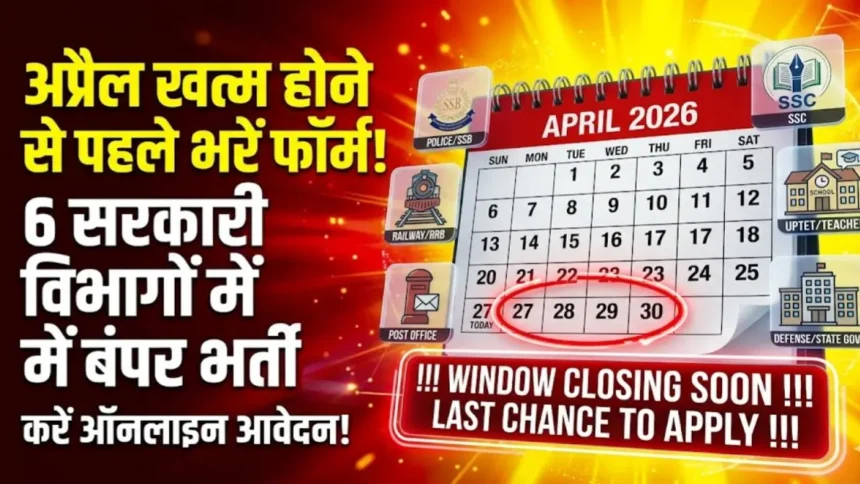 सरकारी नौकरी की तलाश में लाखों युवाओं के लिए अप्रैल 2026 का महीना आखिरी उम्मीद की किरण बन गया है। आज (27 अप्रैल) से लेकर 30 अप्रैल तक कई प्रतिष्ठित संगठनों की बड़ी भर्तियों के आवेदन बंद हो रहे हैं। अगर आप ग्रेजुएट, इंजीनियर, डिप्लोमा धारक या ITI होल्डर हैं, तो यह आपका अंतिम मौका है। देरी न करें, क्योंकि इनमें से कुछ विंडोज आज ही शाम तक बंद हो जाएंगी।