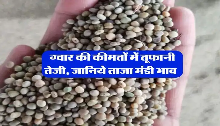 ग्वार के दाम अचानक रिकॉर्ड हाई पर जा पहुंचे हैं। इससे किसानों के चेहरे खिल गए हैं। 4 हजार रुपये बिकने वाला ग्वार अब 10 हजार रुपये क्विंटल से ऊपर कारोबार कर रहा है। दरअसल, अमेरिका में ग्वार की मांग बढ़ी है जिसकी वजह से रेट (Guar ka taja bhav) आसमान छू रहे हैं। आईये नीचे खबर में जानते हैं देश की प्रमुख मंडियों में ग्वार का ताजा भाव –