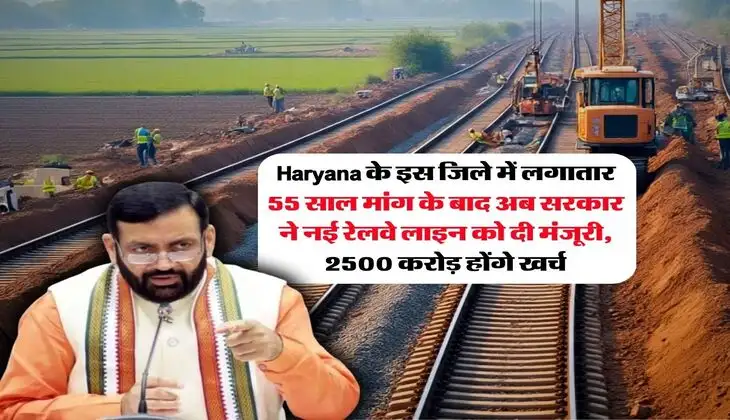 हरियाणा में रेलवे नेटवर्क को बढ़ाने के लिए सरकार कई बड़े प्रोजेक्ट पर काम कर रही है। इसके बावजूद हरियाणा में कई ऐसे जिलें हैं जहां रेवले की सुविधा उपलब्ध नहीं है। राष्ट्रीय राजधानी दिल्ली से लगभग 80 किलोमीटर दूर हरियाणा का एक ऐसा जिला है जहां रेलवे लाइन (New Railway Line in Haryana) के लिए पिछले 55 से ज्यादा सालों से मांग की जा रही है। अब हाल ही में केंद्र सरकार ने पांच दश्कों पुरानी मांग को मान लिया है। सरकार के इस फैसले से हरियाणा के विकास को पंख लग जाएंगे। इस रेलवे लाइन से कई इलाकों को मजबूत कनेक्टिविटी मिलेगी। इसके आसपास लगने वाले इलाकों में प्रॉपर्टी के रेट में भी उछाल आएगा।