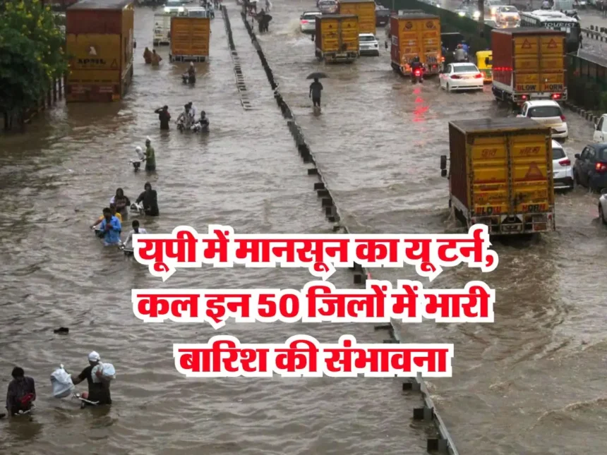 UP Rain Alert : उत्तर प्रदेश में एक बार फिर से बारिश की गतिविधियां तेज हो गई है। प्रदेश के ज्यादाजर जिलों में फिर से जोरदार बारिश देखने को मिलेगी। मौसम विभाग का कहना है कि कई जगहों पर अति भारी बारिश होने से बाढ़ जैसे हालत भी बन सकते हैं। मौसम विभाग (Kal Ka Mausam) ने इन 50 जिलों में अत्यधिक बारिश होने की संभावना जताई है। चलिए जानते हैं –