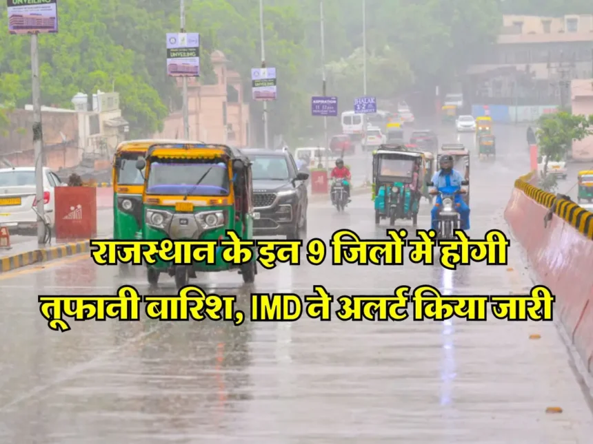 मौसम विभाग का कहना है कि अभी राजस्थान (Rajasthan Ka Mausam) के कई हिस्सों में बारिश देखने को मिल सकती है, जिसको लेकर अलर्ट (IMD Rain Alert) जारी किया है। इस चेतावनी के तहत राज्य के नौ जिलों में भारी बारिश होने और आकाशीय बिजली गिरने को लेकर अलर्ट जारी किया गया है।