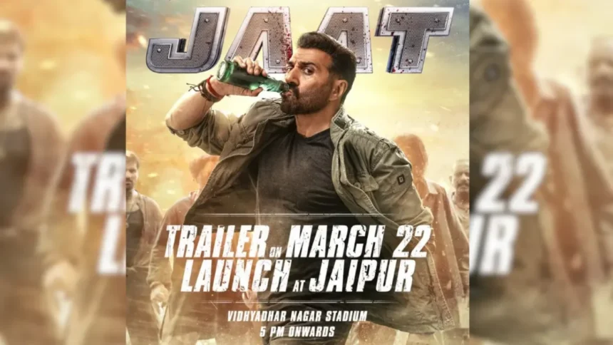 Jaat Trailer Release Date: बॉलीवुड के दमदार एक्शन हीरो सनी देओल अपनी नई फिल्म को लेकर सुर्खियों में हैं। उनके फैंस के लिए बड़ी खुशखबरी यह है कि फिल्म का ट्रेलर 22 मार्च को जयपुर के विद्याधर नगर स्टेडियम में ग्रैंड इवेंट के दौरान लॉन्च किया जाएगा। फिल्म Jaat को लेकर जबरदस्त बज बना हुआ है। पोस्टर और टीज़र से साफ है कि यह फिल्म एक हाई-ऑक्टेन एक्शन ड्रामा होगी। पोस्टर में सनी देओल दमदार अंदाज में नजर आ रहे हैं, हाथ में गिलास और बोतल लिए उनका स्वैग फैंस को काफी पसंद आ रहा है, तो आइये इसके बारे में जानते है।