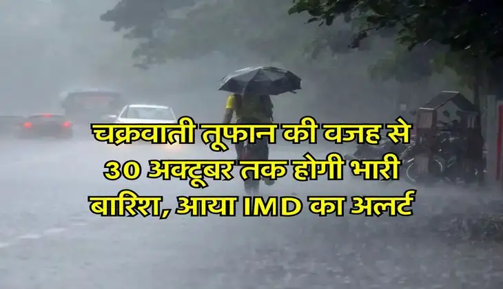 मौसम विभाग ने 26 से 30 अक्टूबर तक कई राज्यों में भारी बारिश होने का भी अलर्ट जारी किया है। मौसम विभाग (IMD Rain Alert) के अनुसार दक्षिणी-पूर्वी बंगाल की खाड़ी के ऊपर बना एक नया निम्न वायु तंत्र चक्रवर्ती तूफान में बदल सकता है। इसकी वजह से कुछ राज्यों में काफी बारिश देखने को मिल सकती है।
