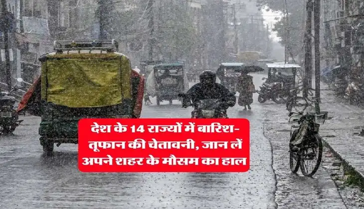 IMD Weather Update : देशभर के राज्यों में गर्मी ने अपने तेवर दिखाने शुरू कर दिए हैं। बीते कई दिनों से तापमान में तेजी से बढ़ौतरी हो रही है जिसकी वजह से भीषण गर्मी पड़ रही है। हाल ही में मौसम विभाग ने आने वाले दिनों मौसम को लेकर पूर्वानुमान जारी किया है। मौसम विभाग ने 14 राज्यों में तेज आंधी तूफान के साथ बारिश की संभावना जताई है। आईये नीचे खबर में विस्तार से जानते हैं –