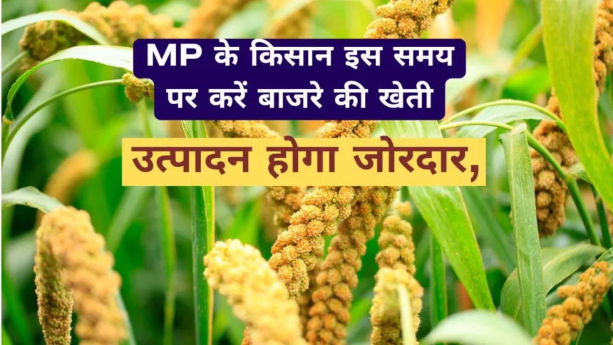 मध्य प्रदेश के किसान बाजरा की खेती जून और जुलाई के महीने में कर सकते हैं। जिसमें 20 जून से 10 जुलाई के बीच का समय बेहतर होता है। अगर आपके यहां बहुत ज्यादा बारिश होती है तो जुलाई के अंतिम सप्ताह तक भी लगा सकते हैं। जिन इलाकों में बारिश कम होती है वहां जुलाई की शुरुआत में लगा सकते हैं। यह फसल 90 दिन में तैयार हो जाती है। कृषि विशेषज्ञ का कहना है कि खेत में 20 से 30% नमी है, तो बाजरे की बुवाई कर सकते हैं।