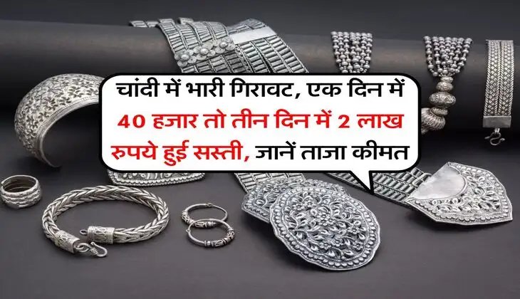 Silver Rate : चांदी में भारी गिरावट, एक दिन में 40 हजार तो तीन दिन में 2 लाख रुपये हुई सस्ती, जानें ताजा कीमत