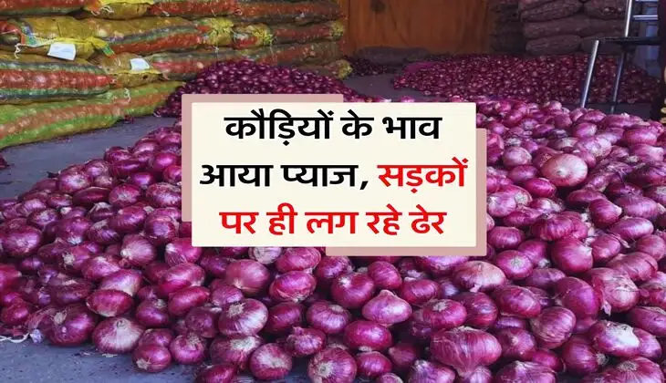 Pyaz ka Bhav : देशभर में महंगाई दिन ब दिन बढ़ती जा रही है और अब इसी बीच जहां आम लोगों के लिए अच्छी खबर आई है। वहीं, किसानों के लिए ये खबर दुखदमयी है। आप जानते ही है कि प्याज का इस्तेमाल हर घर की रसोई में होता है और ऐसे में मंडियों में इन दिनों प्याज कौड़ियों के भाव बिक रहा है। प्याज के दामों (Pyaz ka Bhav) में गिरावट के चलते सड़कों पर ही प्योज के ढेर लग रहे हैं।