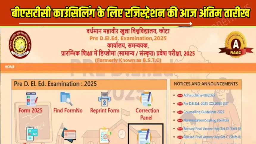 स्टूडेंट्स Rajasthan BSTC Counselling 2025 के लिए रजिस्ट्रेशन VMOU ऑफिशियल वेबसाइट predeledraj2025.in पर जाकर या इस पेज पर दिए डायरेक्ट लिंक से कर सकते हैं।Rajasthan BSTC last Date