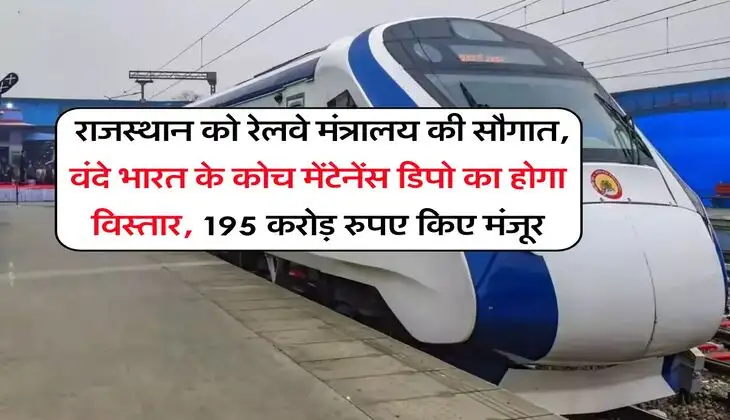 Rajasthan News : राजस्थान के लोगो के लिए एक अच्छी खबर सामने आई है। रेलवे मंत्रालय की ओर से राजस्थान को एक बड़ी सौगात दी जा रही है। रेलवे मंत्रालय की ओर से प्रदेश में अब , वंदे भारत के कोच मेंटेनेंस डिपो (coach maintenance depot ) का विस्तार किया जाने वाला है और इसके लिए 195 करोड़ रुपए की मंजूरी मिल गई है। आइए खबर में जानते हैं इस बारे में विस्तार से।