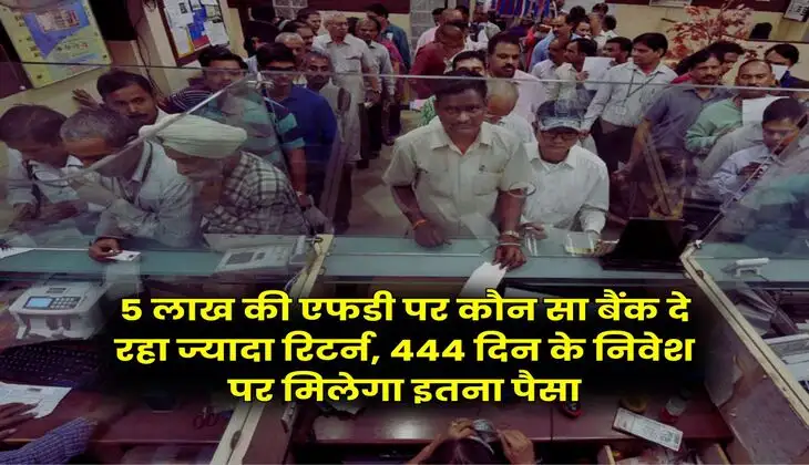 एसबीआई (State Bank of India) अपनी अमृत वृष्टि विशेष सावधि जमा योजना जो कि एक 444 दिन की एफडी स्कीम है, अपने आम जमाकर्ताओं को 6.6 प्रतिशत ब्याज दर प्रदान कर रहा है। अब अगर आप इस एफडी में 5 लाख रुपये निवेश करेंगे तो मैच्योरिटी (maturity) पर कितने पैसे मिलेंगे?