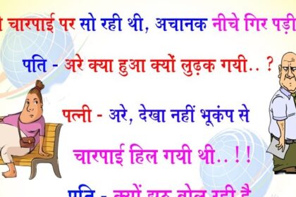 मज़ेदार जोक्स- पत्नी चारपाई पर सो रही थी, अचानक नीचे गिर पड़ी….! पति- अरे क्या हुआ क्यों