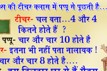 मजेदार जोक्स: मैथ्स की टीचर क्लास में पप्पू से पूछती है, टीचर- चल बता….4 और 4 कितने होते हैं?