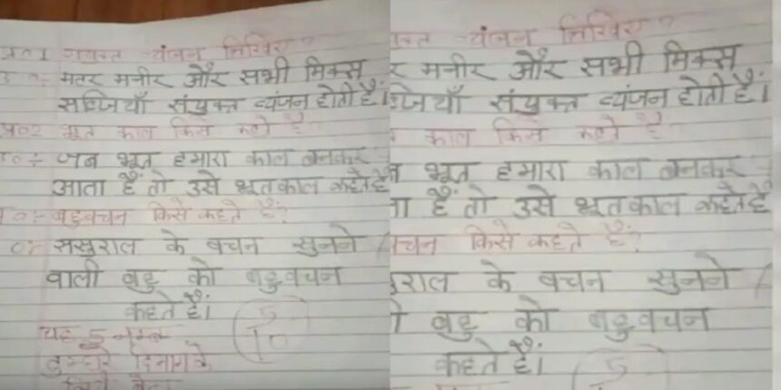 युट्यूबर फॉर्म परीक्षा की आंसर लिखने वाले स्टूडेंट की आंसर शीट के बाद एक बार मजेदार आंसर शीट वायरल हो रही है। जिसे देख टीचर का हँस -हँस कर बुरा हाल हो रहा है। सोशल मीडिया पर भी इसे देखने वालों की हंसी हो रही नहीं रूक रही है। एक बच्चे ने हिंदी परीक्षा की आंसर सीट देखकर हंसने पर मजबूर हो गए।