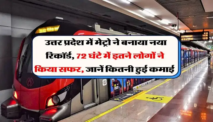 Metro News : उत्तर प्रदेश में प्रगतिकार्य लगातार रफ्तार पकड़ रहा है। यहां पर नई नई मेट्रो लाइनों को बिछाया जा रहा है। इस बीच मेट्रो (UP Metro) ने एक नया और बेहतरीन रिकॉर्ड बना दिया है। बता दें कि अब 72 घंटे में इतने लोग सफर कर लिया है कि मेट्रो में सफर के सारे रिकॉर्ड टूट गए है। आइए जानते हैं इससे कितनी कमाई हुई है।