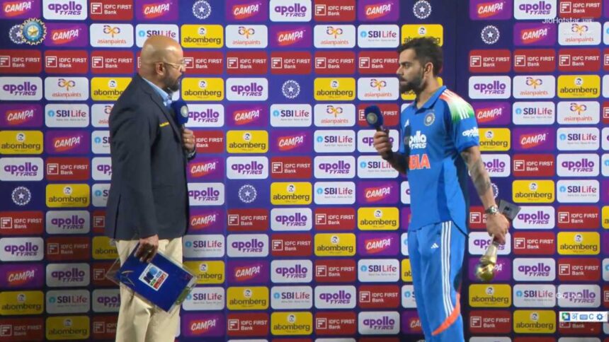 Virat Kohli: भारत बनाम साउथ अफ्रीका के बीच आखिरी मैच विशाखापत्तनम में खेला गया इस मैच में भारतीय टीम का ने विजय हासिल कर लिया और वही अब सीरीज पर कब्ज़ा कर लिया टेस्ट में हारने के बाद भारतीय टीम के जख्म पर मरहम लग गया है. इस सीरीज में विराट कोहली (Virat Kohli) ने अपने खोये हुए फॉर्म को वापिस पा लिया. उन्हीने 3 मैच में 302 रन ठोके. इस मैच में 65 रन की तेज तरार पारी खेली और प्लेयर ऑफ़ सीरीज अपने नाम किया. नाबाद भारत को जीत दिलाकर लौटे. ऐसे में उनसे जब यह सवाल पुछा आपको सबसे अच्छी पारी कौन सी लगी और क्यों तो उन्होंने जवाब दिया.