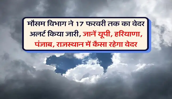 Weather Alert : देश के कई हिस्सों में अब गर्माहट देखने को मिल रही है। भले ही सुबह-शाम हल्की ठंड महसूस हो रही है, लेकिन दिन में तापमान में बढ़ौतरी हो रही है। अब इसी बीच मौसम विभाग ने देश के कई हिस्सों का 17 फरवरी तक का वेदर अलर्ट (Weather Alert ) जारी कर दिया है। आइए खबर के माध्यम से जानते हैं कि मौसम विभाग ने यूपी, हरियाणा, पंजाब, राजस्थान के मौसम के बारे में क्या अपडेट जारी किया है।